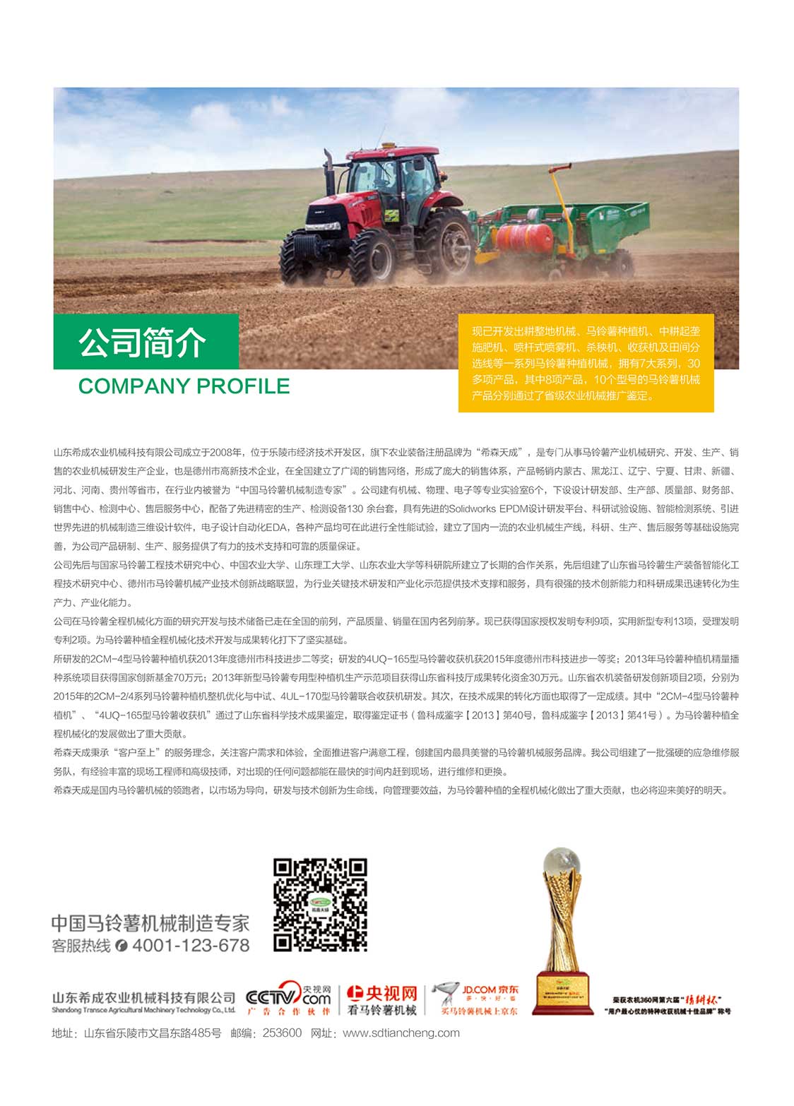 山東希成農(nóng)業(yè)機(jī)械科技有限公司位于樂(lè)陵市經(jīng)濟(jì)技術(shù)開(kāi)發(fā)區(qū)云紅北大街北首, 成立于2008年,是專門從事馬鈴薯產(chǎn)業(yè)機(jī)械研究、開(kāi)發(fā)、生產(chǎn)、銷售的農(nóng)業(yè)機(jī)械研發(fā)生產(chǎn)企業(yè),在全國(guó)建立了廣闊的銷售網(wǎng)絡(luò),形成了龐大的銷售體系,產(chǎn)品暢銷國(guó)內(nèi)馬鈴薯主產(chǎn)區(qū),并暢銷國(guó)外多個(gè)馬鈴薯主產(chǎn)國(guó)。