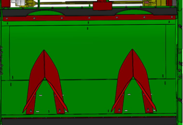 3、導流隔板技術:導流隔板沿薯壟的頂部運行,其將切除的秧苗和雜草分流至兩邊的壟溝里,利于后期收獲機的收獲。