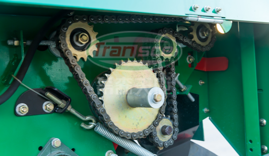 4、格柵式輸送分離篩及抖動輪組合:輸送帶由驅動輪驅動,驅動輪為橡膠齒,與鋼柵條嚙合好,磨損輕,壽命長;這種型式的輸送分離篩使用可靠,馬鈴薯破損少。抖動輪可抖動輸送分離篩,提高馬鈴薯與土壤的分離能力。