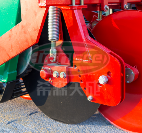 主要由圓盤刀、固定架、壓簧、調整裝置組成,圓盤刀無動力驅動,靠摩擦力運轉,主要用來將沿薯壟兩邊的地表連同雜草切開,利于挖掘部件挖掘,同時防止機器兩側莖蔓、雜草纏繞堵塞。