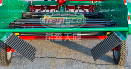 分離清選后的馬鈴薯輸送到機器的后方,通過調整集條擋板的寬度,將馬鈴薯鋪放在地面上,以便撿拾。